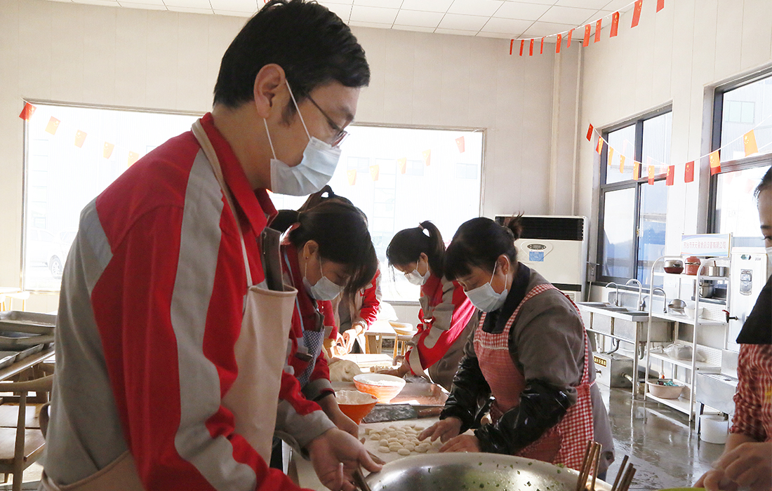 活動現場,員工們積極參與,熱情高漲,整個過程中歡聲笑語不斷,從揉面團、搟餃子皮、制作餡料到包餃子等工序都是由全體員工分工合作完成。在包餃子過程中還特意挑選14個包了花生的“幸運餃子”作為員工抽獎使用,吃到“幸運餃子”的員工第二天中午可以免費就餐。